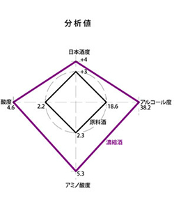 アルコール度、酸度、アミノ酸度が約2倍に増えているのに対し、日本酒度がわずかしかふくらんでいないのがポイントです。
