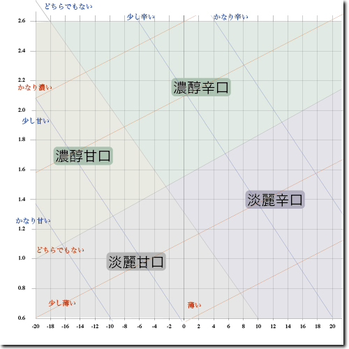 数値が-(マイナス)ならば甘口で、その数値が大きくなれば、甘くなっていきます。